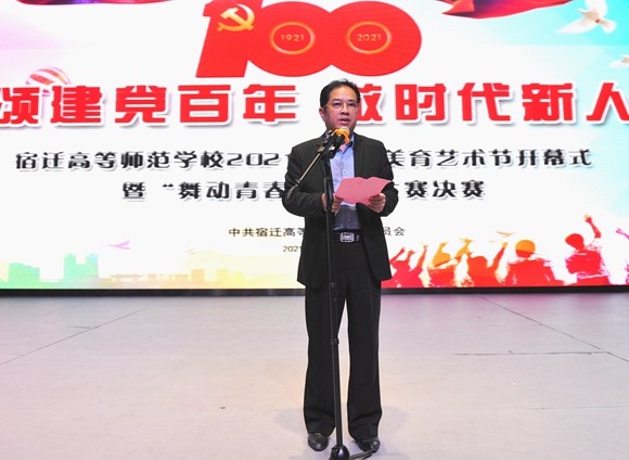 5月18日晚,“颂建党百年 做时代新人”--宿迁高师2021年校园美育艺术节开幕式暨校园舞蹈大赛决赛在我校大礼堂成功举办。校党委书记、校长史余强在开幕式上致辞。校领导班子成员、中层干部及部分师生代表共同观看演出。
