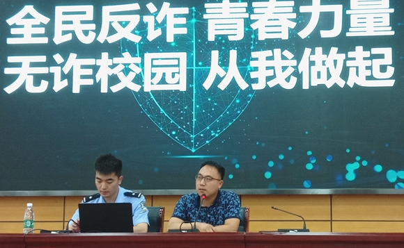 刘警官以《全民反诈 青春力量 无诈校园 从我做起》为题,从近期学校发生的网络刷单诈骗讲起,深入细致地讲述了什么是电信网络诈骗、电信网络诈骗的常见套路、如何识别防范电信网络诈骗。对以学生群体为主要作案目标的刷单返利、冒充网购客服、“杀猪盘”、网络借贷等诈骗形式进行了重点讲解,加强了防诈“断网、断卡行动”宣讲,警示同学们不要贪图小利,将自己的电话卡、银行卡租售给他人使用或帮他人提现转账,沦为他人犯罪的工具。