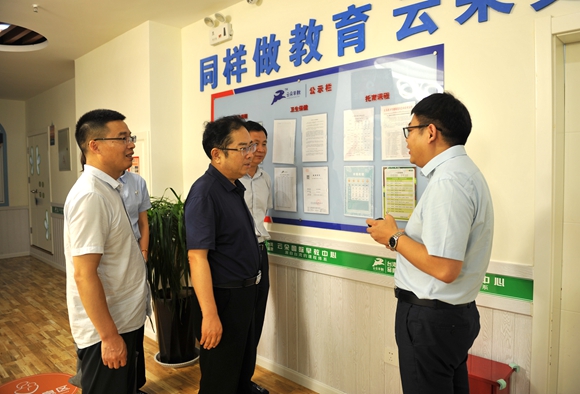 7月14日下午,我校党委书记、校长史余强、党委副书记韩勇一行调研云朵总部,实地考察了云朵托育中心(宿迁),受到云朵总部徐明军董事长热情接待。双方就联合办学、人才供给、课程优化等方面深入交流。