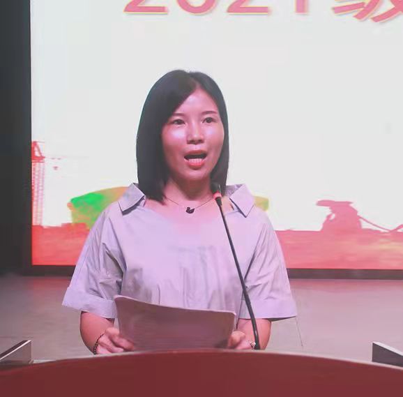 教师代表、学前教育一系石建群及新生代表、艺术系2021级音乐班程靖迤分别在典礼上发言。