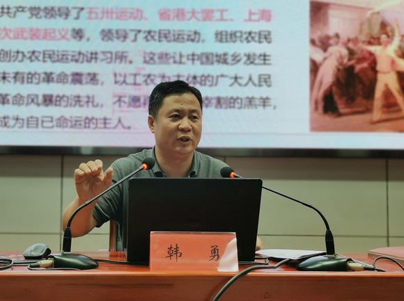 9月15日下午,我校党委书记、校长韩勇以《江山就是人民 人民就是江山——习近平“以人民为中心”思想的理论渊源与实践基础》为题,为师生代表在综合楼东三楼会议室开设政治理论讲座。
