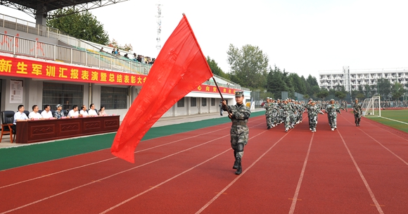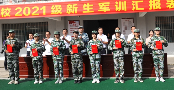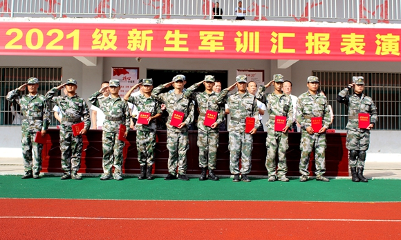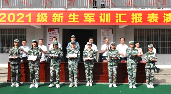 9月29日上午,我校在校操场举行2021级新生军训汇报表演暨总结表彰大会。