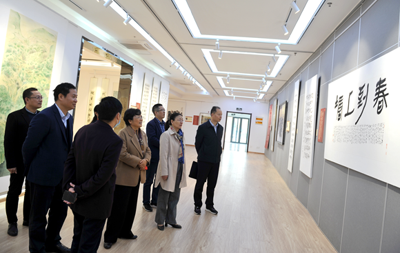 调研组一行观看了学校党史学习教育展牌,校党委副书记葛井井向调研组汇报了学校坚持“两代师表,一同塑造”,建设“行走的思政课堂”,将党史学习教育贯穿立德树人、教书育人全过程的基本情况。调研组随后参观了校图书馆,观看了学生舞台剧《红岩》,到校美术馆参观了师生党史教育书画作品。