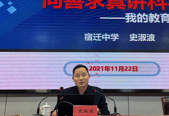 会议邀请宿迁中学优秀教师史淑波从“真心是美好、善良是根本、真诚是追求”三个方面讲述了自身数十年教育教学故事,以及阅读拓宽视野、开拓格局、提升教育教学方法的经验做法。