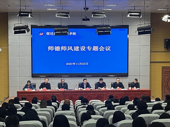 2021年11月22日下午,我校在综合楼三楼会议室召开师德师风建设专题会议,全体领导班子成员和教职工参会,校党委副书记葛井井主持会议。