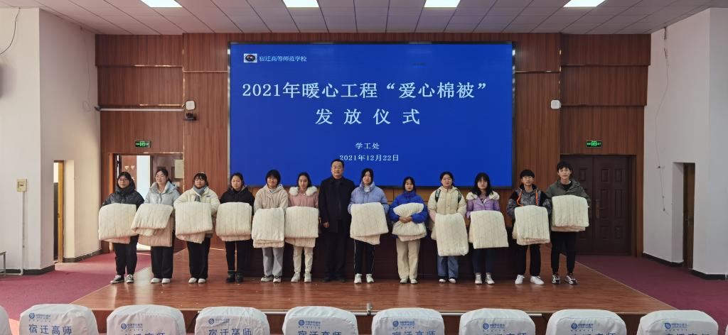 为贯彻落实省、市有关开展“暖心工程”的文件精神,12月22日中午,校党委委员、副校长刘芝兵在二号楼学术报告厅为2021级94名家庭经济困难学生发放“爱心棉被”。