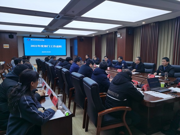 为总结交流过去一年经验做法,分析工作中存在的短板弱项,谋划新一年工作思路举措,1月19日,我校召开党支部、部门2021年度工作述职会。党委书记、校长韩勇到会作点评讲话。校党委副书记葛井井主持,领导班子成员和全体中层干部参加了工作述职会。