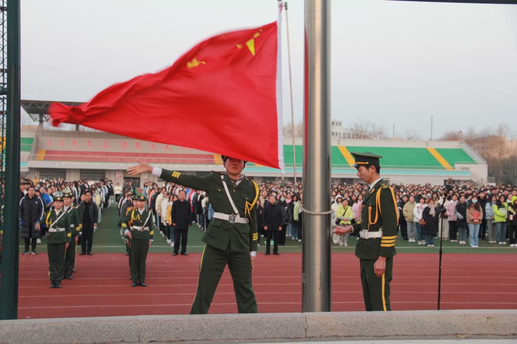 2月21日上午,我校在校运动场举行新学期第一次升旗仪式。校党委委员、副校长刘芝兵发表国旗下讲话,学工处负责人陆伟主持仪式。班主任、系主任、学工处全体人员和全校学生参加仪式。