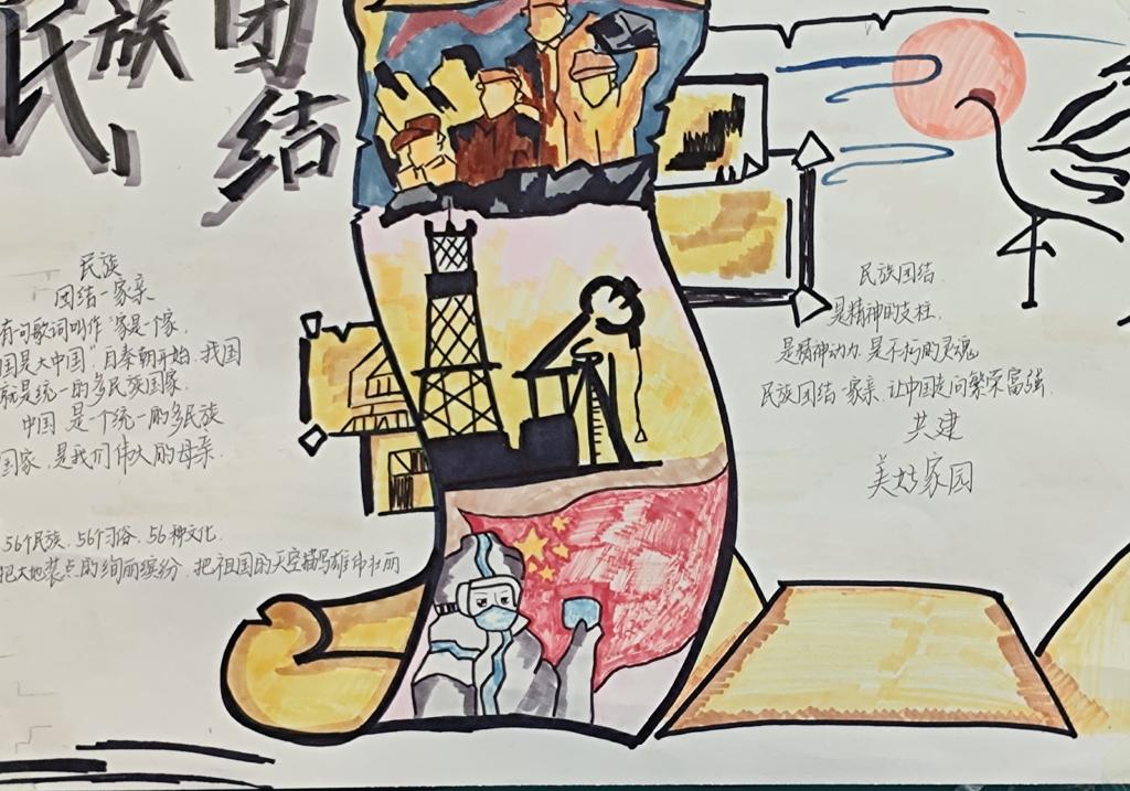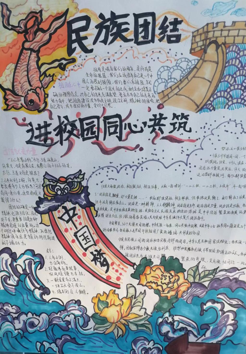 我校用手抄报的形式营造民族团结的良好氛围,为创建和谐校园注入新血液。民族团结进步宣传月系列活动,推动民族团结进步教育进校园、进课堂、进头脑。