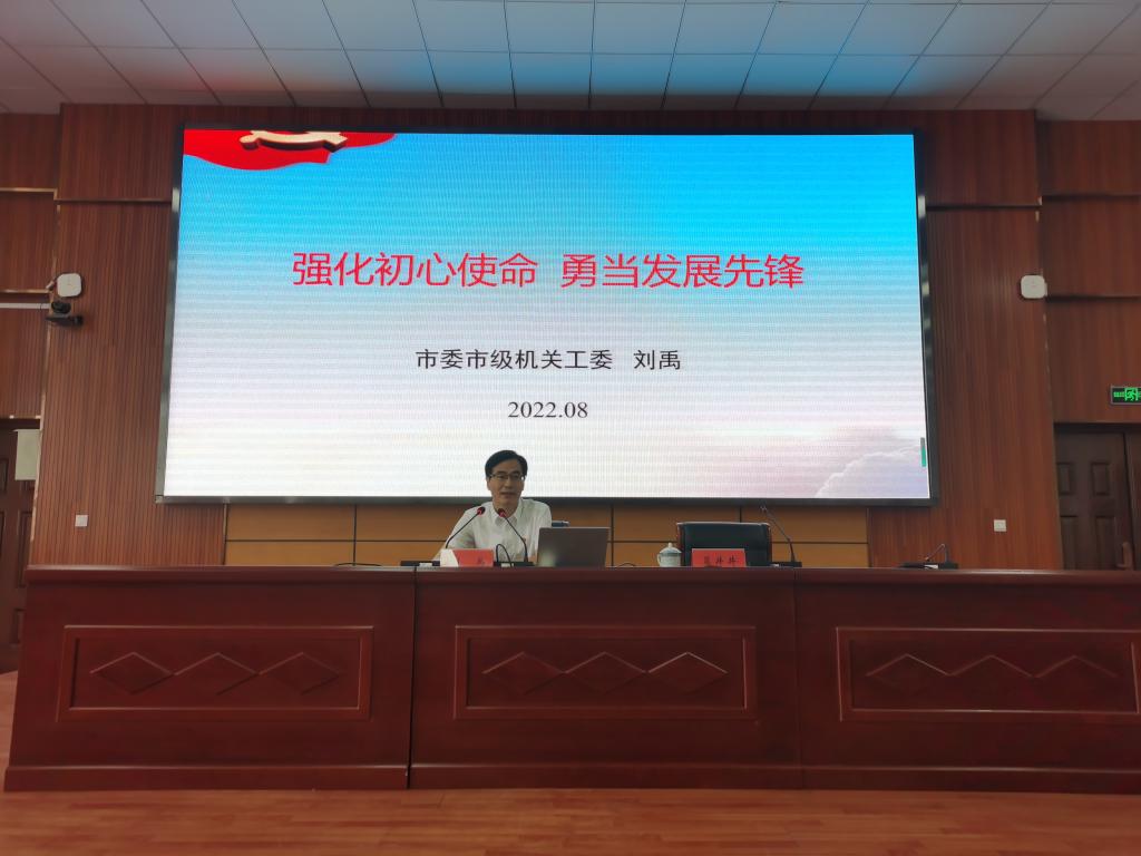 培训第一讲,市委市级机关工委副书记刘禹以《强化党建引领,勇当发展先锋》为题,围绕“在历史回眸中强化初心使命”、“在夯基垒台中提升党建质量”、“在深度融合中勇当发展先锋”三个篇章,追忆百年光辉党史、剖析党务工作要点、分享党建与业务融合经验,为我校新起点坚持党建引领注入新的动能。