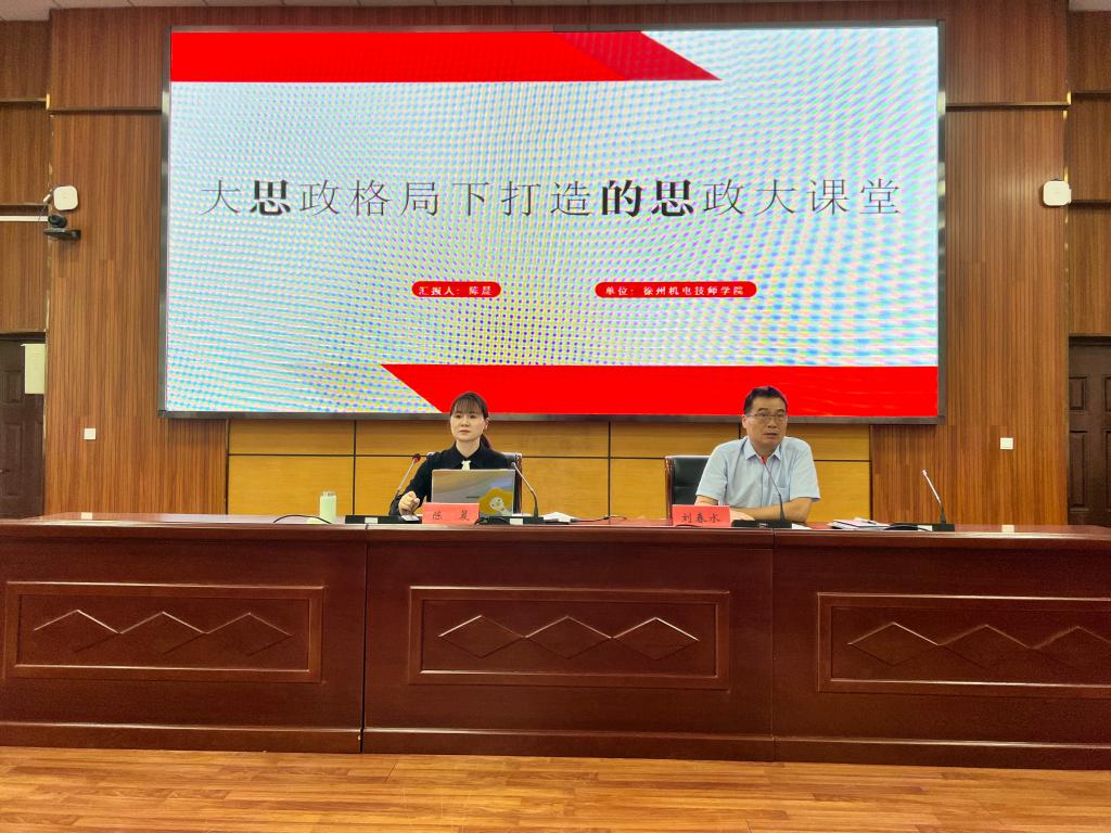徐州机电学院陈晨主任为我们带来《大思政格局下打造的大思政课堂》。她以自己参加教学大赛市赛、省赛以及国赛的心路历程分享入题,以“如何上好一堂思政课”为例,为广大教师详细讲解了教学团队参赛作品的设计思路,进行了现场答辩展示,为我校教师感知大赛、科学备赛提供了满满干货。