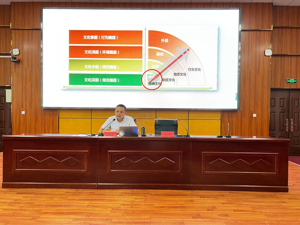 校党委副书记葛井井以《文化立校,赋能学校高质量发展》为题,从身边案例引入,深入阐释意识形态和教育领域意识形态工作的重要性,围绕“在思考中确立文化立校的坐标”,“在探寻中形成文化立校的架构”,“在实践中彰显文化立校的特色”三个话题,详实总结了我校意识形态工作的实际做法,深入浅出,娓娓道来。