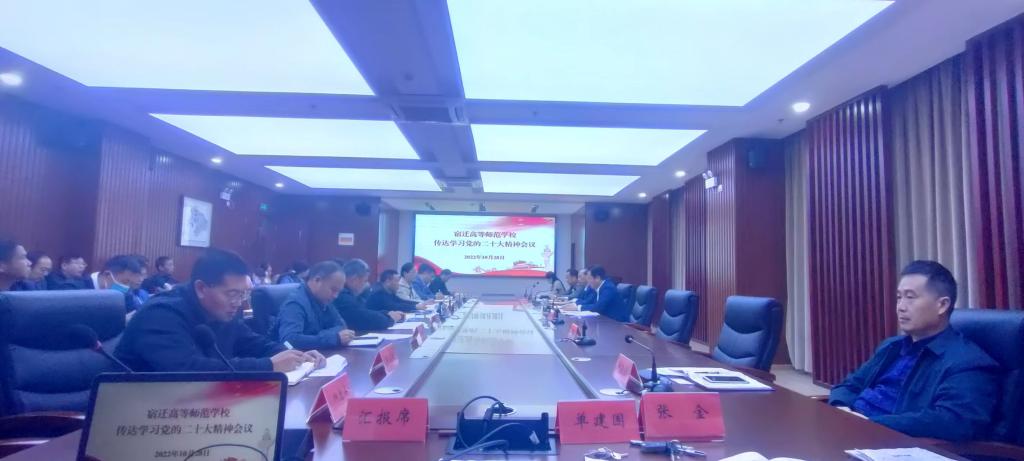 会议强调,学习好、宣传好、贯彻好党的二十大精神是当前和今后一个时期首要政治任务。要按照中央、省委、市委部署要求,迅速掀起学习贯彻热潮,持续推动党的二十大精神在宿迁高师落地生根、开花结果。要坚持深研细读、融会贯通。全校师生要把学习党的二十大精神作为思政教育、全员培训等工作的重要内容,做到原原本本学、深入思考学、联系实际学,切实把智慧和力量凝聚到贯彻落实党的二十大精神上来。要坚持以上率下、全员覆盖。通过党委理论学习中心组学习、党员教育培训等形式,采取领导干部带头学、全校发动集中学、结合专题系统学等方法,推动形成自上而下、层层传达、整体推进的良好局面。要坚持创新形式、注重实效。组织开展理论研究、专题报告、精神宣讲等系列活动,综合采用师生喜闻乐见的形式,推动党的二十大精神进校园、进课堂、进教材,入脑入心。