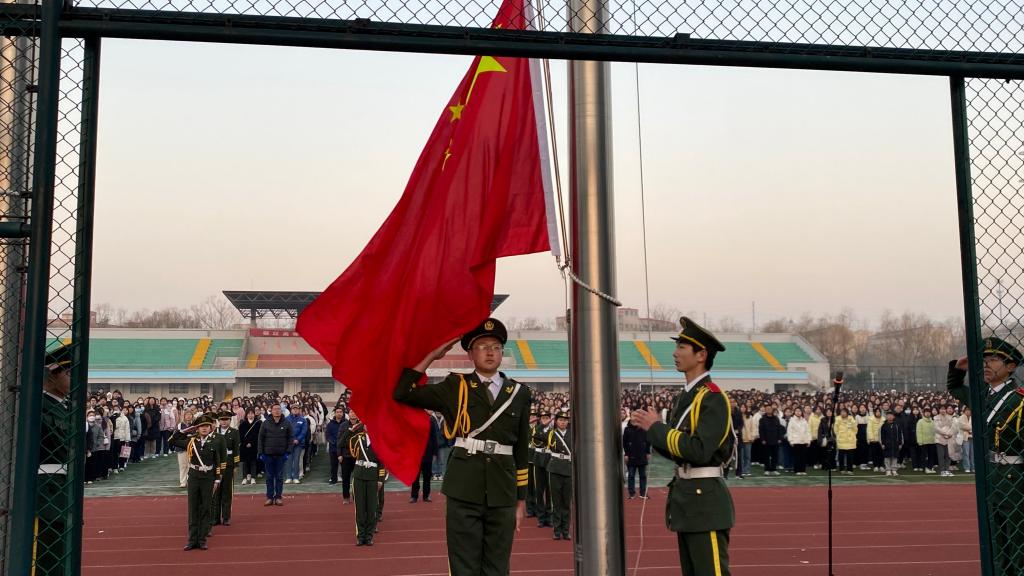 2月20上午,我校举行新学期升旗仪式,校党委委员、副校长刘芝兵出席仪式并讲话,全校班主任和全体同学参加仪式,学工处处长马卫东主持仪式。