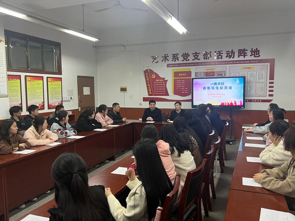 4月2日晚,艺术系召开春季写生动员会。校党委委员、教务处处长刘春水到会作动员讲话,2019级美术教育专业全体学生和专业专任教师参加会议,艺术系党支部书记、主任周善超主持动员会。