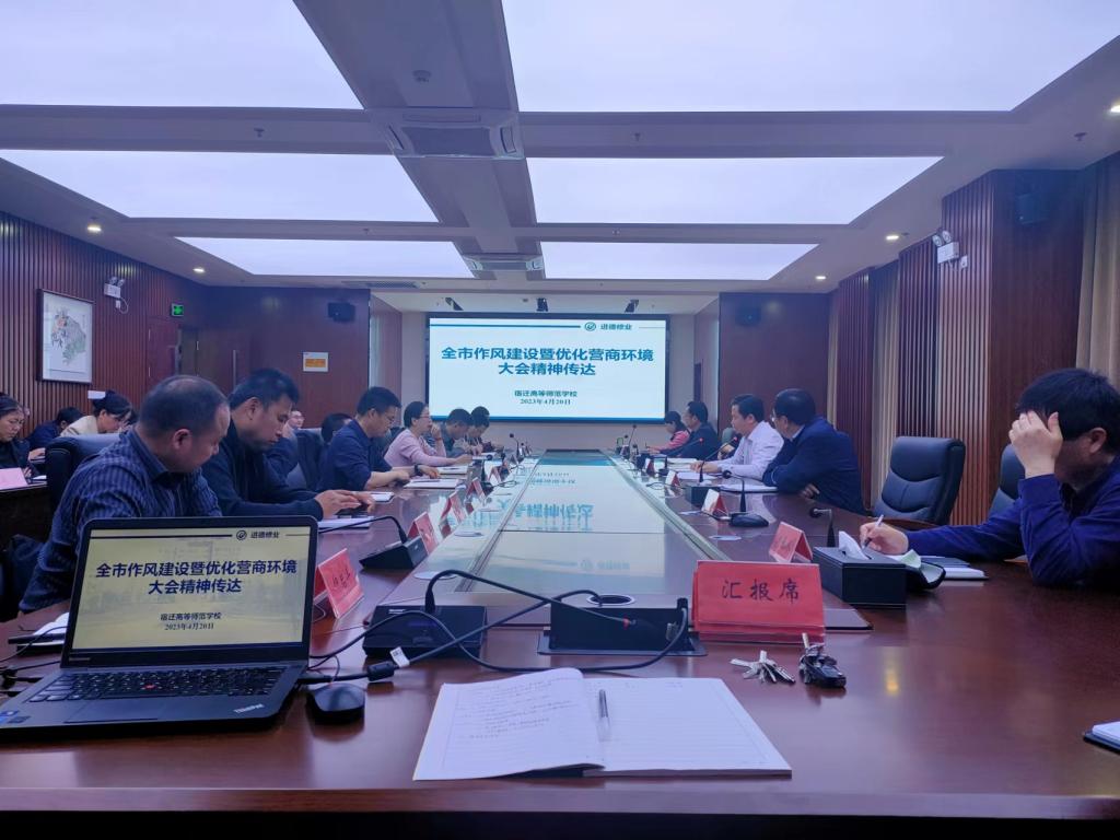 4月20日下午,宿迁高师召开会议,专题传达学习全市作风建设暨优化营商环境大会精神。校党委书记、校长韩勇主持会议并讲话,校领导班子成员,全体中层干部参加会议。