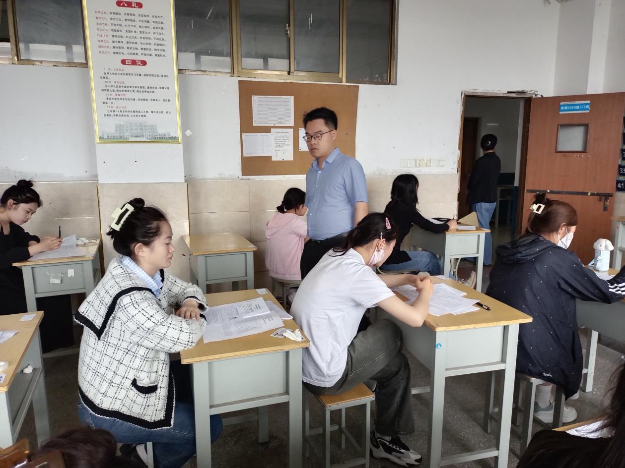 5月27日,我校组织2023年育婴员(三级/高级工)职业技能等级认定考试,2018级学前教育专业144名学生参加考试。校党委委员、副校长刘芝兵到场巡视,市考试鉴定中心李梦博主任现场督导。