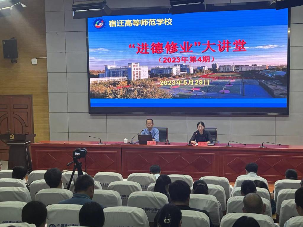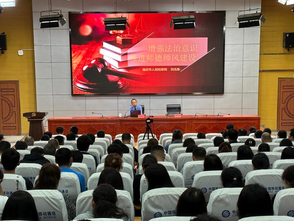 5月29日下午,我校举行“进德修业”大讲堂第四期讲座。本期聚焦法治意识强化、高尚师德涵养,邀请宿迁市人民检察院副检察长刘兆东作专题报告。校党委书记、校长韩勇等领导班子成员,全体教职工参加活动。校党委委员、人事处处长高凯主持报告会。