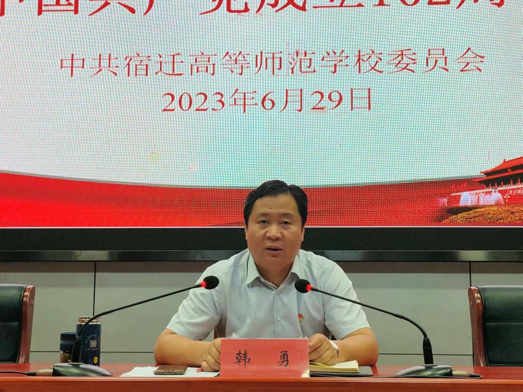 6月29日上午,宿迁高等师范学校召开庆祝中国共产党成立102周年大会,进一步激励引导全校上下重温党的光辉历史,弘扬伟大建党精神,勇担时代光荣使命,凝心聚力、共创辉煌,在新征程上继续书写引领推动学校事业高质量发展的崭新篇章。校党委书记、校长韩勇出席会议并讲话。在校领导班子成员,全体党员参加会议。校党委委员、副校长张彦芝主持大会。