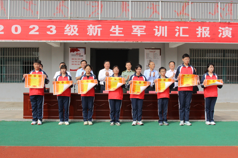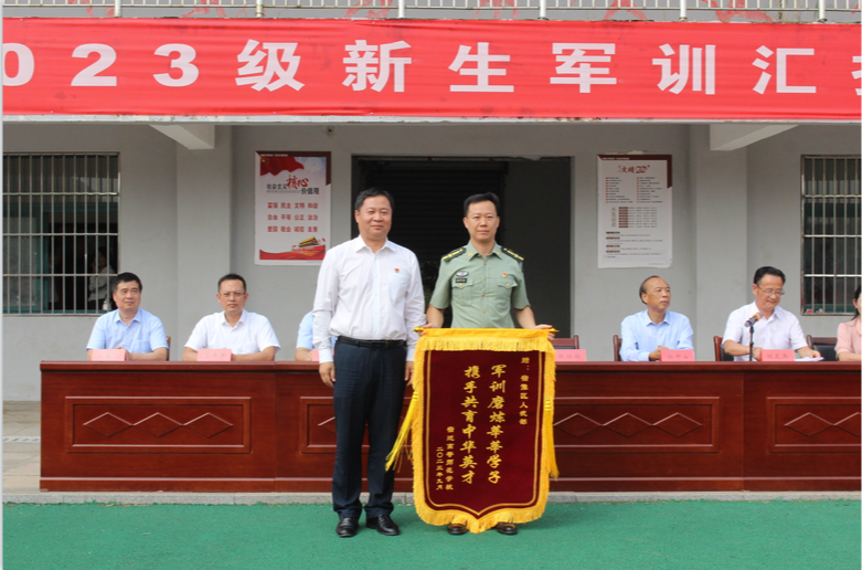 汇报演出后,校党委委员、副校长张彦芝宣读了表彰决定。校领导分别为优秀教官、军训先进个人、军训先进班集体颁奖。韩校长代表学校向宿豫区人武部赠送锦旗,感谢全体教官的辛勤付出。