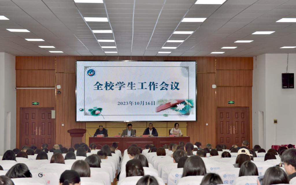 为进一步加强班主任队伍建设,切实提升学校德育水平,全面落实立德树人根本任务,10月16日下午,我校召开全校学生工作会议。校党委委员、副校长刘芝兵出席会议并讲话。各系主任、副主任、团总支书记,全体班主任,优秀学生代表,优秀学干代表,学工处及团委工作人员出席会议。学工处副处长葛鹏主持会议。