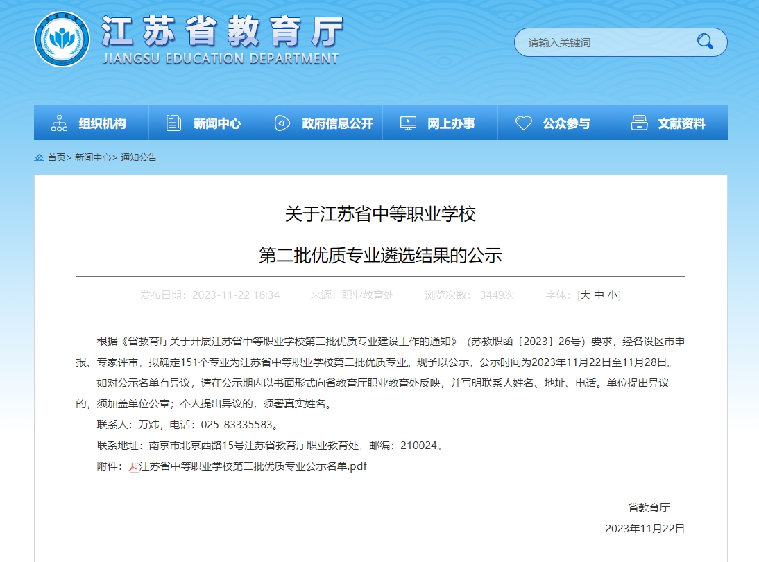 近日,江苏省中等职业学校第二批优质专业遴选结果公示,我校美术教育专业榜上有名。