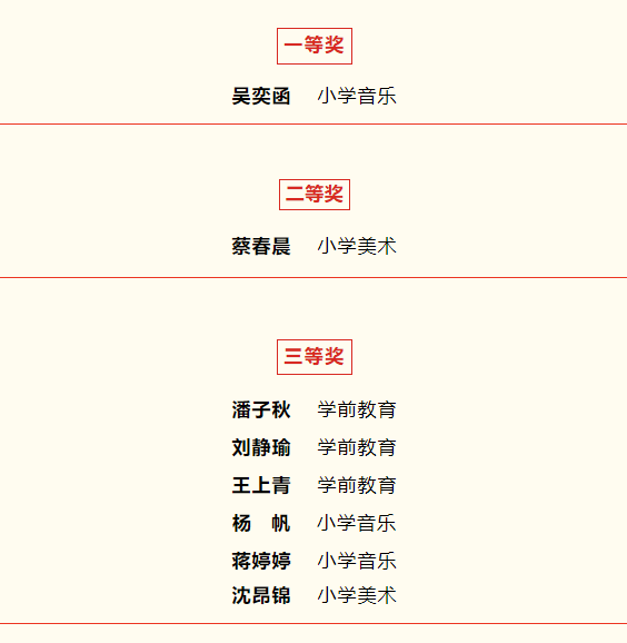 近日,第十二届江苏省师范生教学基本功大赛成绩公布,我校喜获佳绩,其中吴奕函同学在小学音乐专业组别中荣获一等奖,蔡春晨同学在小学美术专业中荣获二等奖。