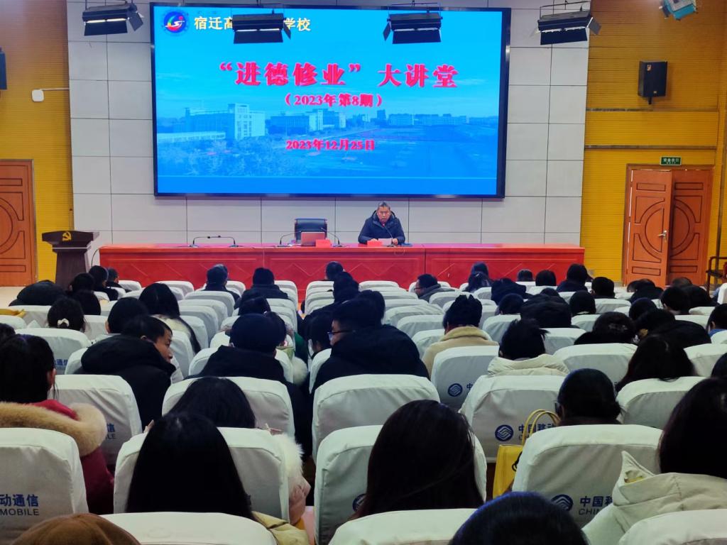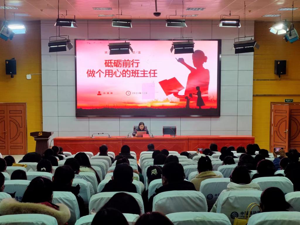 12月25日下午,我校举行2023年第8期“进德修业”大讲堂专题讲座。本期聚焦班主任工作能力提升,邀请2023年度校“十佳班主任”代表孙琳琳、钱晓年两位老师作班主任工作经验分享。全体教学及学生管理人员参加活动,学工处处长马卫东主持讲座。