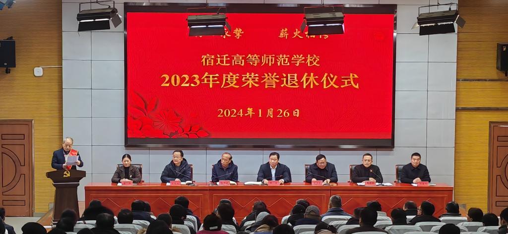 为持续打造一所人文关怀有温度的温馨校园,切实增强广大教职工的荣誉感、归属感和幸福感,激励退休老同志离岗不离心、退休不褪色,1月26日,宿迁高等师范学校举行2023年度教职工荣誉退休仪式。校党委书记、校长韩勇等领导班子成员及全体教职工参加仪式,共同祝贺陆剑波、张卫平、李文、朱立安、蔡敦良5位同志光荣退休,党委副书记葛井井主持荣退仪式。