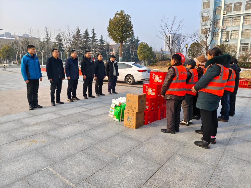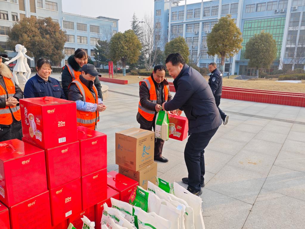 新春佳节即将来临之际,2月9日上午,学校党委书记、校长韩勇,副校长张彦芝、刘芝兵等看望慰问保安、物业保洁等后勤人员,为他们送去关爱物资,送上节日美好祝福。