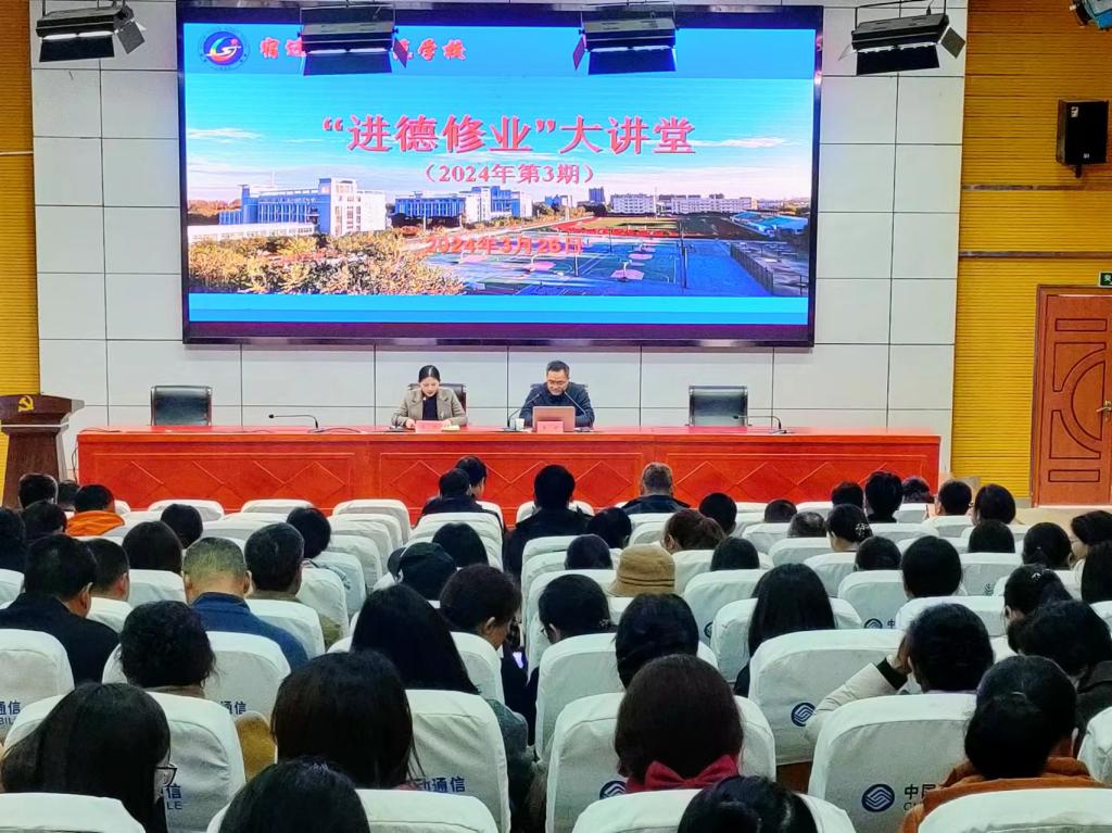 3月26日下午,我校举办“进德修业”大讲堂2024年第3期讲座,邀请首都师范大学副教授、硕士生导师王颖作师德师风专题报告,全体教育教学人员参加活动,校党委委员高凯主持报告会。