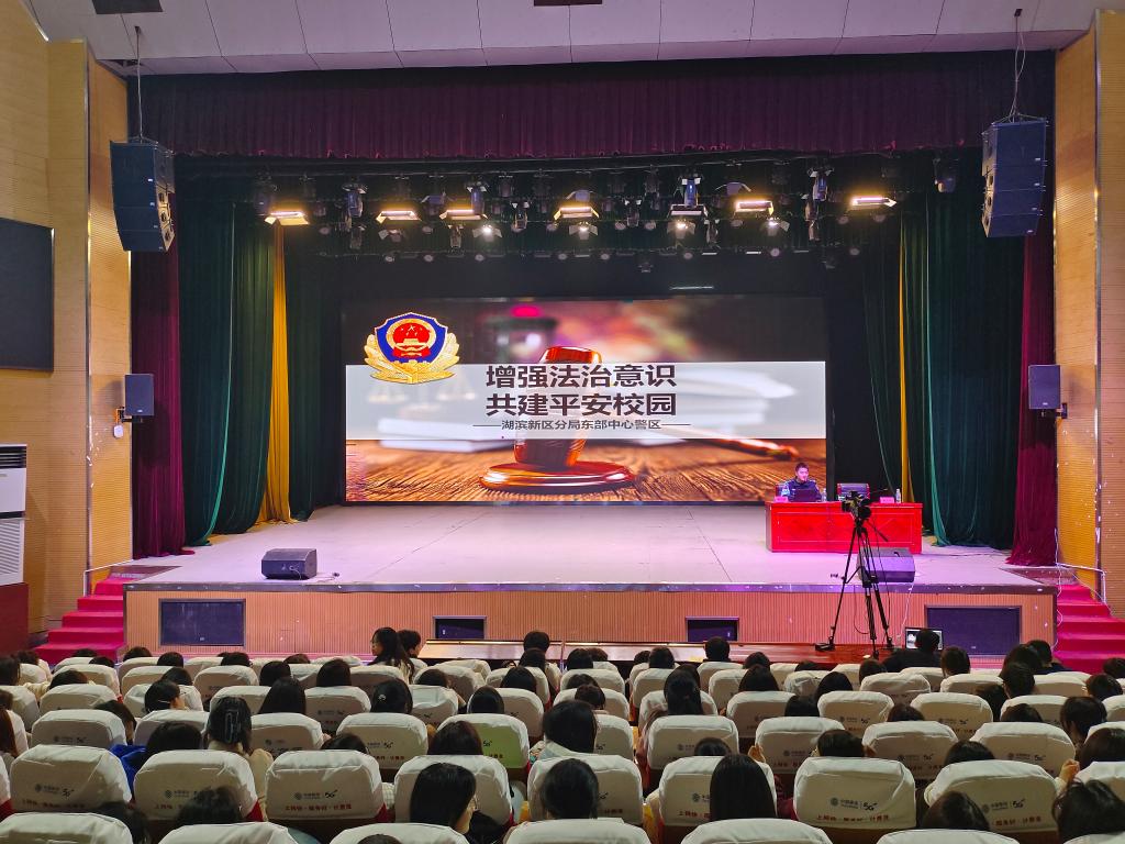 为贯彻落实第29个全国中小学生安全教育周相关文件精神和工作要求,切实加强校园安全教育,提高广大学生法治意识、安全防范意识和自我防护能力,3月29日下午,我校成功举办了一场法治教育讲座。此次讲座由学工处、安保处组织,邀请了我校法治副校长、湖滨新区公安分局职教园区派出所警探长刘李担任主讲人,我校千余名学生聆听了本次讲座。