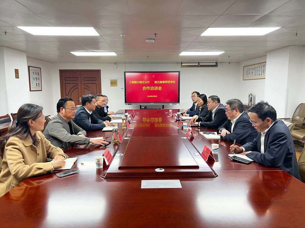 4月9日下午,工商银行宿迁分行党委书记、行长汤国栋带领工行相关领导一行5人莅临我校,就产教融合、教育事业与金融创新合作等领域进行了深入洽谈,双方就推进银校合作初步达成共识。校党委书记、校长韩勇,党委副书记葛井井、副校长刘芝兵等热情接待。