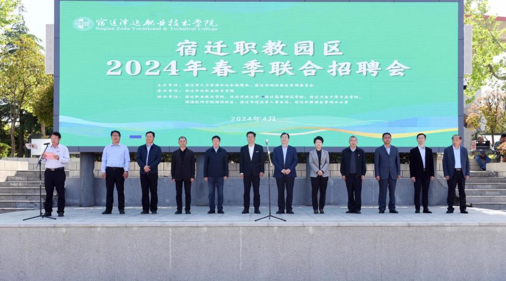 4月24日上午,宿迁市人力资源和社会保障局、宿迁市湖滨新区管理委员会主办的“宿迁职教园区2024年春季联合招聘会”在宿迁泽达职业技术学院隆重开幕。我校高度重视学生就业工作,精心组织、积极参与此次招聘大会。学校党委书记、校长韩勇,招生就业处副处长宋碧,旅游管理系主任邹志高以及学校部分师生参加本次招聘活动。