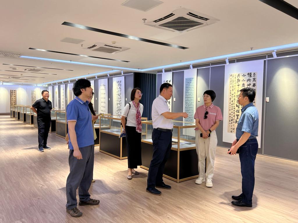 崔书记一行先后参观了学校美术馆师生书画展、智慧食堂、京东校园馆等场所,韩勇校长介绍了学校办学情况和办学特色。