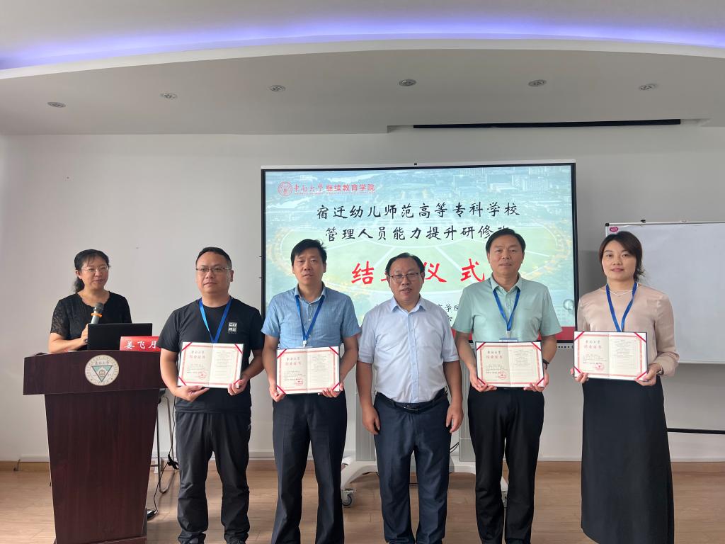 7月16日上午,Beat365官方网站科管理人员能力提升研修班举行结业仪式。东南大学继续教育学院院长助理姜飞月向学员代表颁发结业证书,并对幼专表达了美好祝福。两位参训代表分享了参训学习心得。