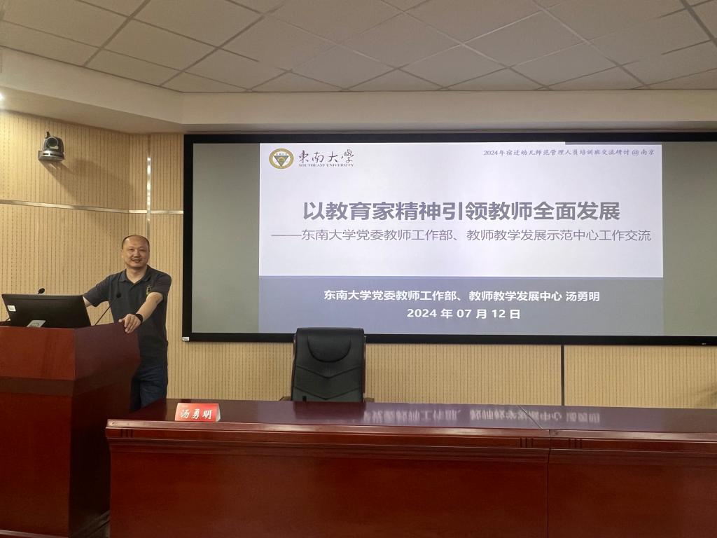 东南大学党委教师工作部部长、教师教学发展中心主任汤勇明与我们分享了教育家精神学习体会,传授我们创新教师思政工作的方法路径,教给我们压实师德师风责任的经验做法。