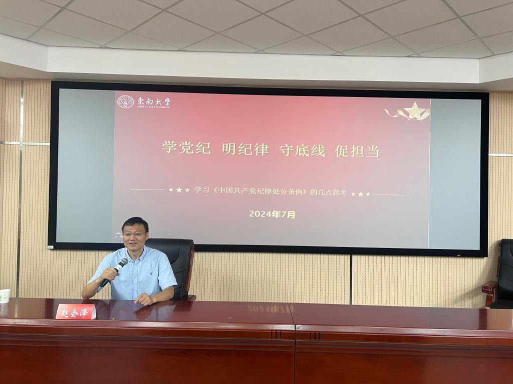 中共东南大学纪委副书记赵会泽紧密结合当前党纪学习教育,围绕新时代领导干部的素质要求,引导我们自觉加强思想淬炼、政治历练、党性锻炼,树牢规矩意识和纪律意识,把所见所学转化为深耕教书育人、创新推动工作的本领。