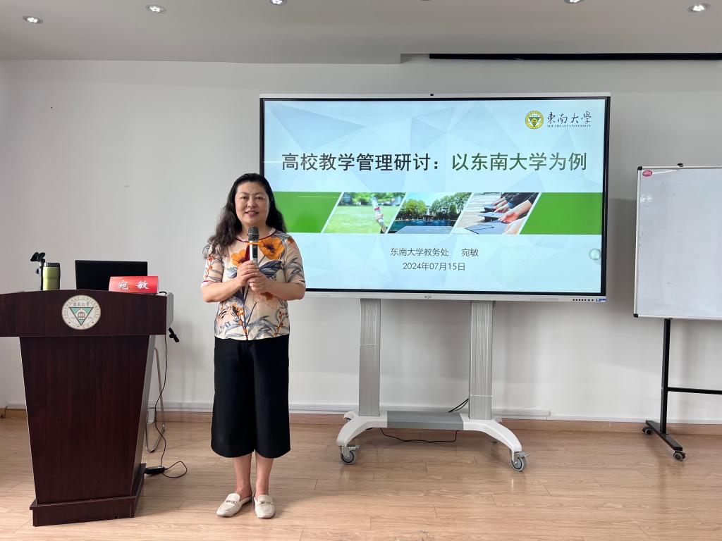 东南大学教务处副处长宛敏通过多岗位经验分享,深刻阐述“思想上落伍,行动一定迟缓”的道理,以及教学管理最根本的是要实事求是、遵循教学规律和人才培养规律,实施规范管理和科学管理。