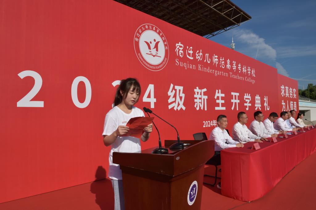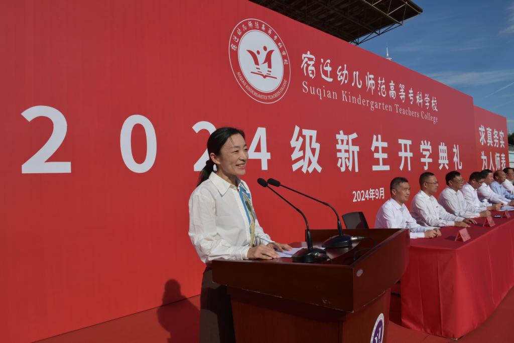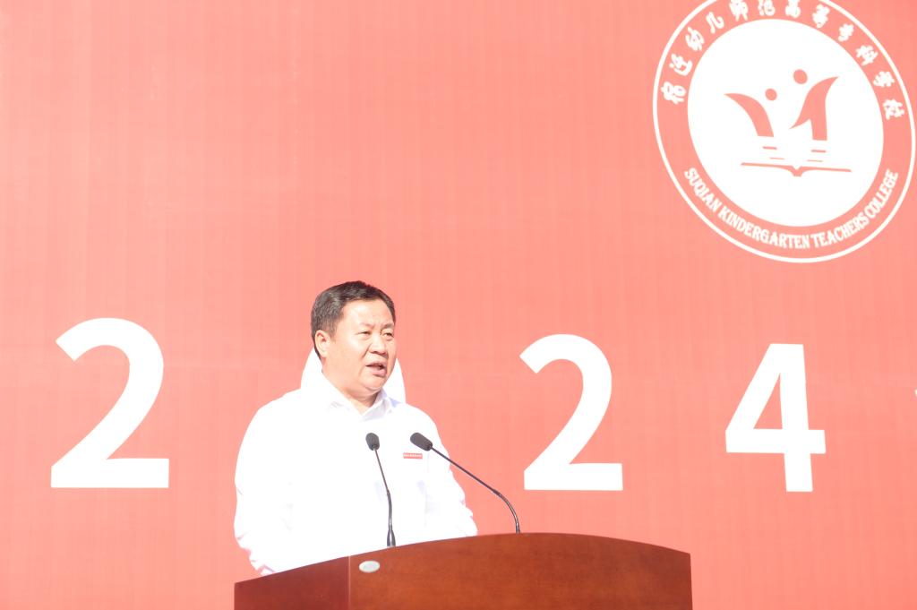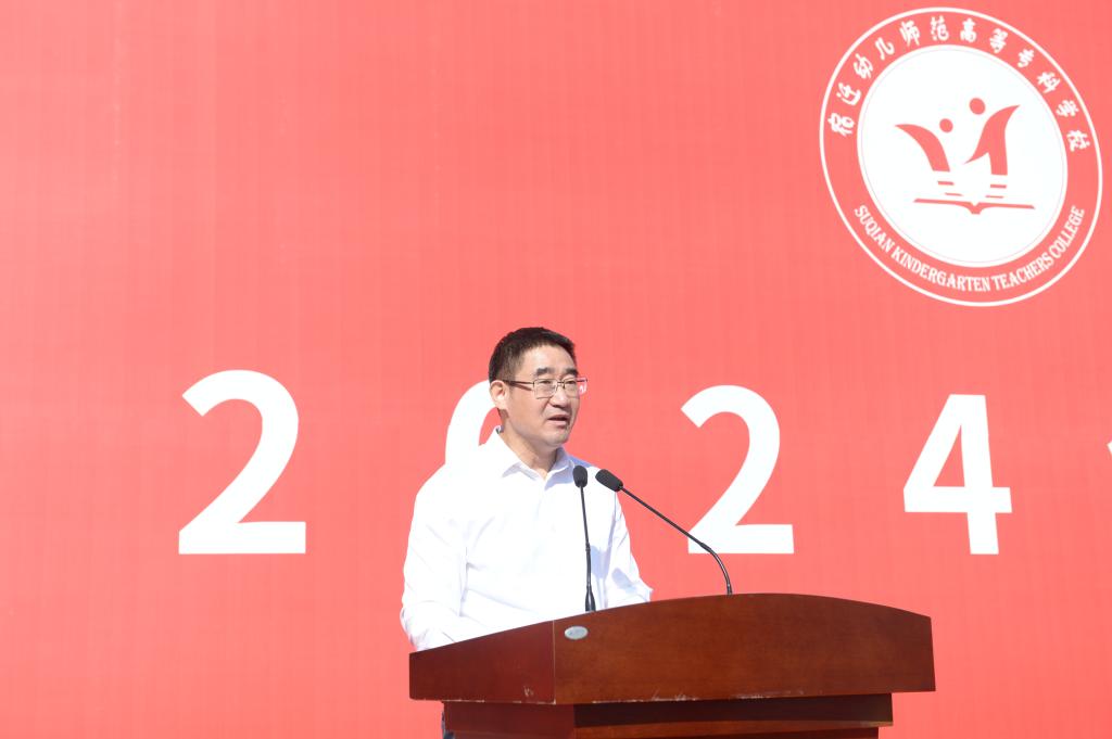 市委教育工委书记、市教育局局长倪成城出席典礼,代表全市教育系统对各位新同学的到来表示热烈的欢迎,对学校全体师生员工表示衷心的祝贺,并从历史底蕴、生态环境、经济发展、教育质量等方面向新生介绍了宿迁的情况。他表示,学校要紧紧围绕加快建设成为区域学前教育师资培养培训的重要阵地、更好地服务教育强省建设重大任务来勇担使命;全体教师要紧紧围绕落实立德树人根本任务、服务学生全面发展重大责任来提高本领;全体新同学要紧紧围绕成长为担当民族复兴大任的时代新人重大要求来增长才干,立报国强国大志向、做挺膺担当奋斗者,书写别具一格的青春华章。