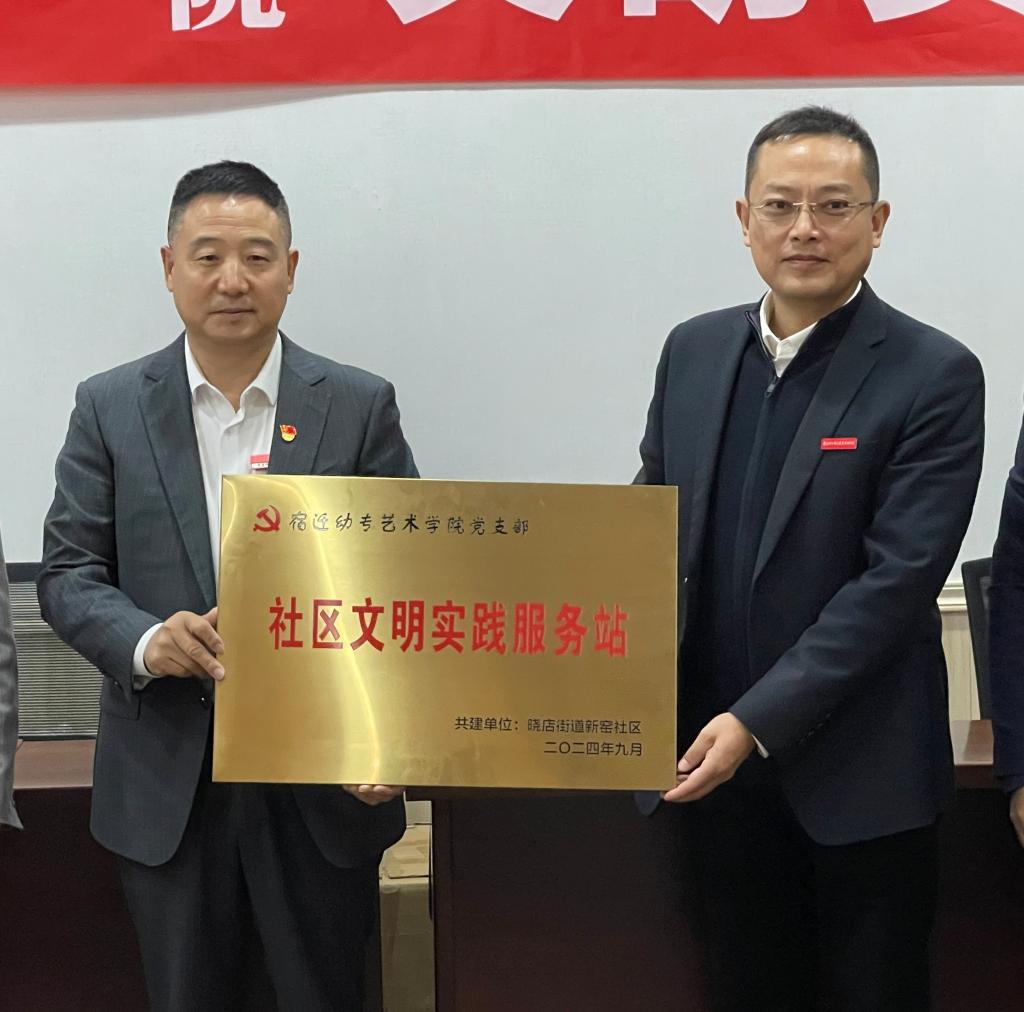 校领导班子成员葛井井和新窑社区党支部书记李富猛共同为艺术学院“文明实践志愿服务站”授牌,校地双方就社区文明实践活动展开研讨。葛井井提出,志愿服务是精神文明建设的重要组成部分,要努力实现志愿服务的常态化、形式多样化,不断改进志愿服务形式,更好满足社区居民需求。