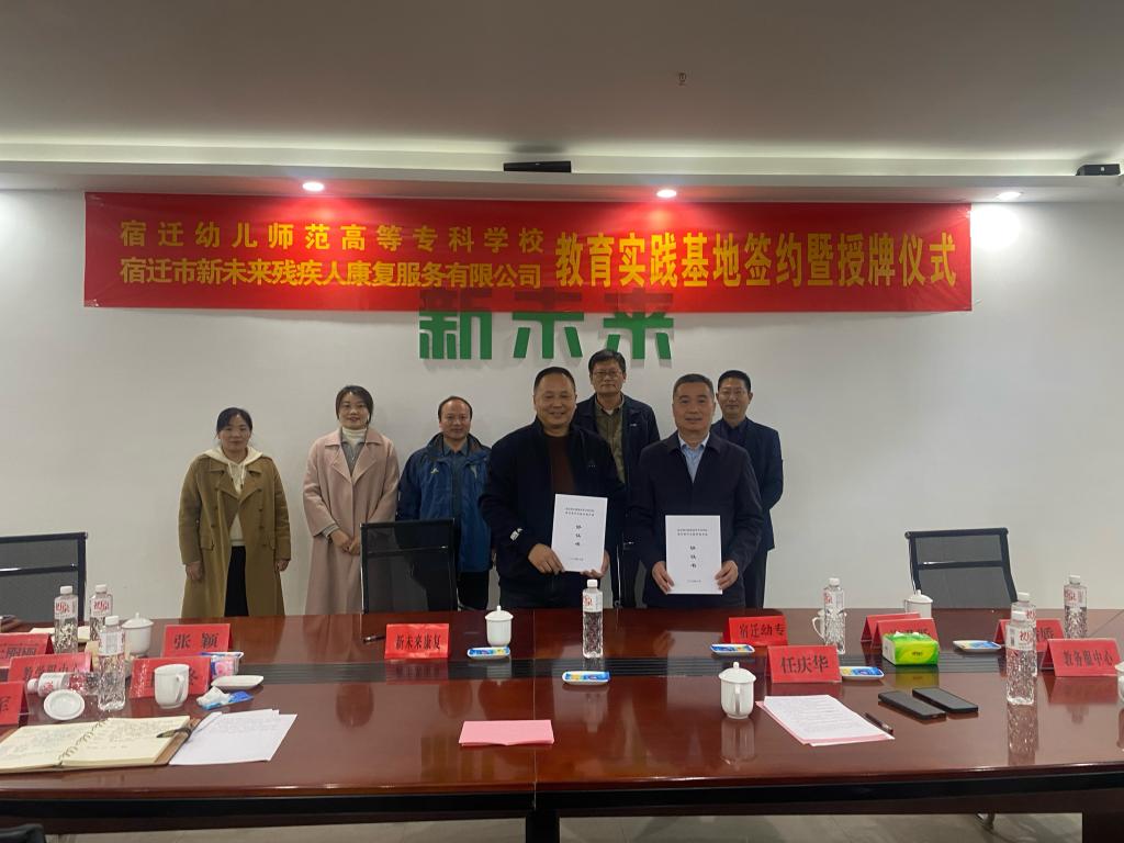 为提升人才培养质量,拓宽学生就业渠道,搭建高质量实训平台,11月21日,我校学前教育学院与新未来残疾人康复服务有限公司举行合作签约仪式。我校校党委委员、副校长刘春水,学前教育学院院长许乃跃,院党支部书记张颖及学院教师代表参加本次活动,宿豫区残联党组书记、理事长王新军,该公司教学总督导王小冬及语言部、康复部负责人出席活动。该公司执行董事任庆华主持仪式。
