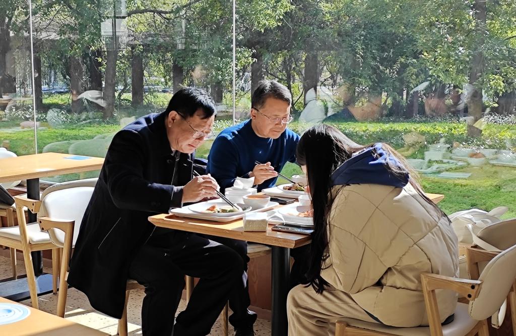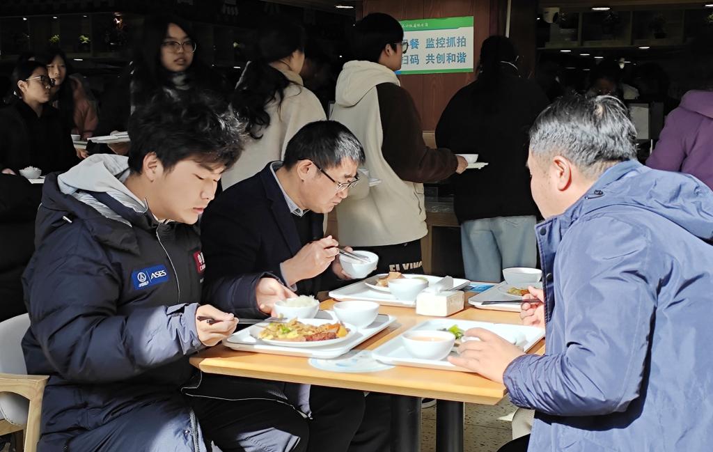 来校参加党委理论中心组学习旁听指导的市委教育工委书记、市教育局局长倪成城,在我校党委书记、校长韩勇的陪同下,也一同参加了“校园餐”陪餐活动。