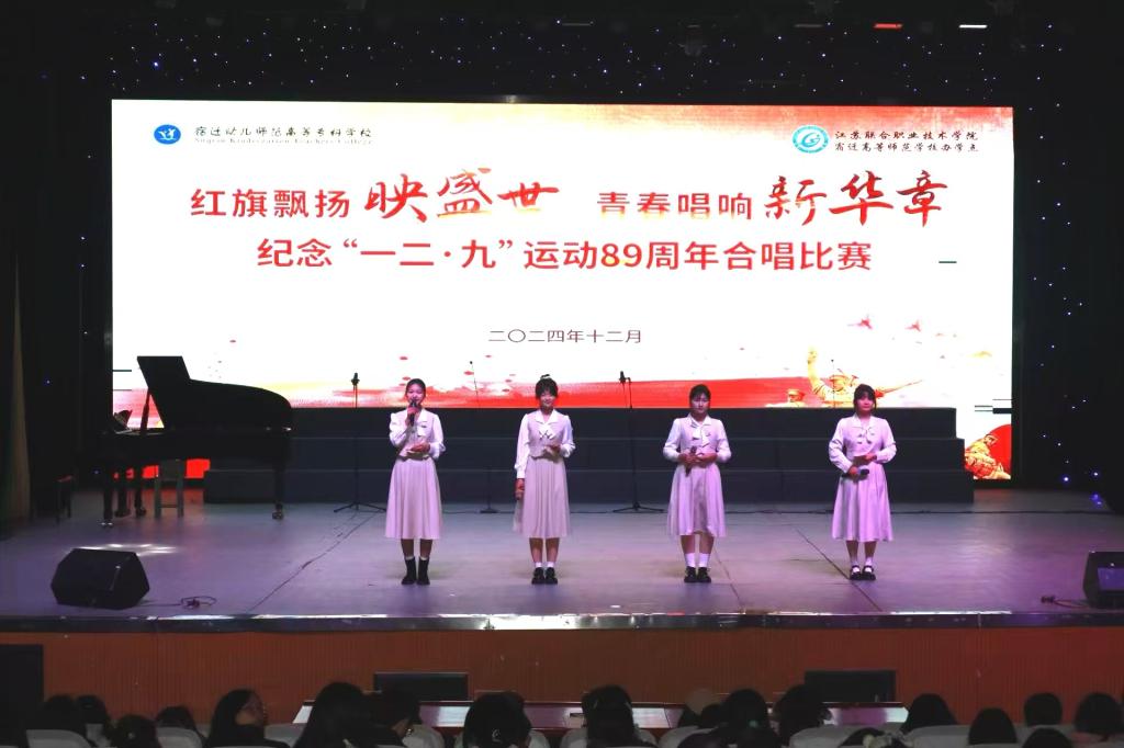 12月9日晚,我校在大礼堂举行“红旗飘扬映盛世 青春唱响新华章”——纪念“一二·九”运动89周年合唱比赛。在校领导班子、中层干部及师生代表一同观看本次比赛。何胜刚、王铁亮、孙骈、宋晓英、王丹妮五位老师担任本次比赛评委。