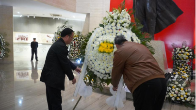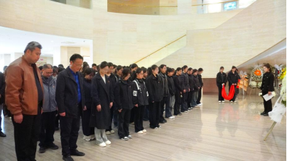全体师生在朱瑞将军纪念像前整齐列队,垂首默哀,学生向将军纪念像敬献花圈,并依次献上白菊,表达对革命先烈的深切追思。