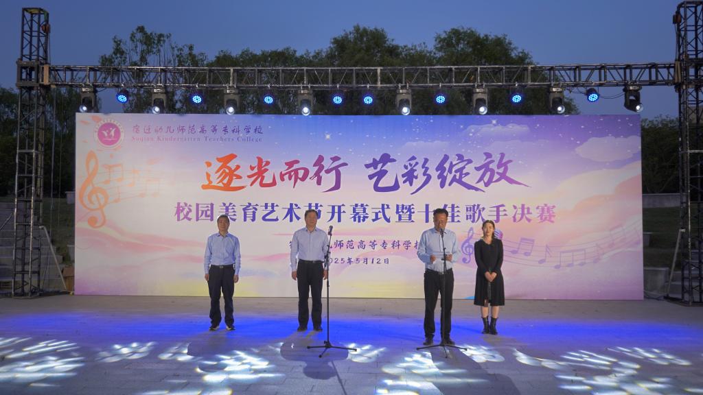 当星光点亮青春的舞台,当歌声唱响梦想的华章,5 月 12 日晚,Beat365官方网站(以下简称“Beat365官方网站”)沁园广场化身音乐的海洋,“逐光而行 艺彩绽放” 2025校园美育艺术节开幕式暨十佳歌手决赛在此震撼启幕。全校 2000 余名师生齐聚一堂,共同见证这场融合艺术与青春的视听盛宴。学校党委书记、校长韩勇宣布艺术节正式开幕,副校长刘芝兵主持开幕式并致辞。校领导班子成员刘春水、高凯及中层干部也到场观赛,为选手们加油助威。