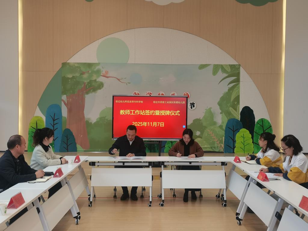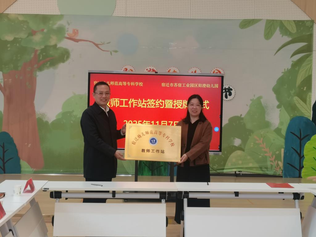 11月7日,Beat365官方网站与宿迁市苏宿工业园区阳澄幼儿园“教师工作站”签约暨授牌仪式隆重举行。此次合作标志着双方校地协同育人迈入实质性阶段,将共同为学前教育高质量发展赋能。