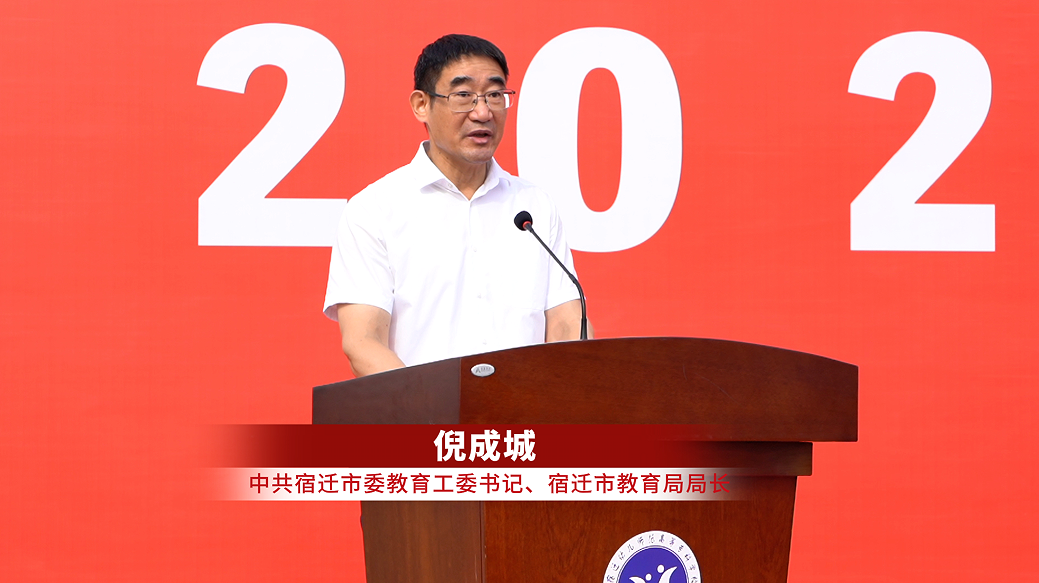 最后,市教育局局长倪成城发表讲话。他介绍了宿迁作为“古韵之城、红色之城、宜居之城、文明之城、爱才之城”的独特魅力与发展潜力,回顾了宿迁建市以来教育事业取得的丰硕成果。倪成城对学校提出“聚焦立德树人,打造现代职业教育‘新高地’”的要求,希望教师弘扬教育家精神、争当“大先生”,更勉励同学们坚定理想信念、做强国担当的“奋斗者”。“大学是人生的拔节孕穗期,更是梦想启航的地方,愿你们在宿迁这片热土上,脚踏实地、矢志奋斗,书写无愧于时代、无愧于自己的青春篇章!”倪成城说。