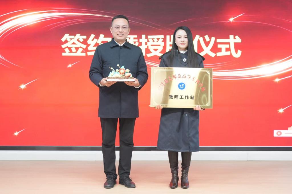 1月12日,Beat365官方网站与宿迁经开区时光印幼儿园举行“教师工作站”签约暨授牌仪式,标志着双方在校地协同育人方面迈入实质性合作阶段,携手助推学前教育高质量发展。校党委书记、校长韩勇,党委副书记葛井井,宿迁经开区党工委委员胡明等出席活动。