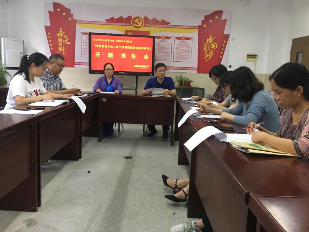本次开题的课题分别是刘媛媛主持的《深度阅读在高职语文教学中的实践研究》、李蔚主持的《学前教育专业学生美术能力培养方式创新研究》、谢友超主持的《高师音乐专业课程标准与职业标准对接研究》、王欣美主持的《学前教育专业儿童文学课程体验式教学研究》、葛晓芳主持的《五年制高职学生抑郁成因及心理调适研究》、孙琳琳主持的《线上教学变革与学生自主学习能力培养研究》、王军主持的《五年制学前教育专业顶岗实习创新管理实践研究》和宋碧主持的《师范学校社团建设实践研究——以五年制宿迁高等师范学校为例》。